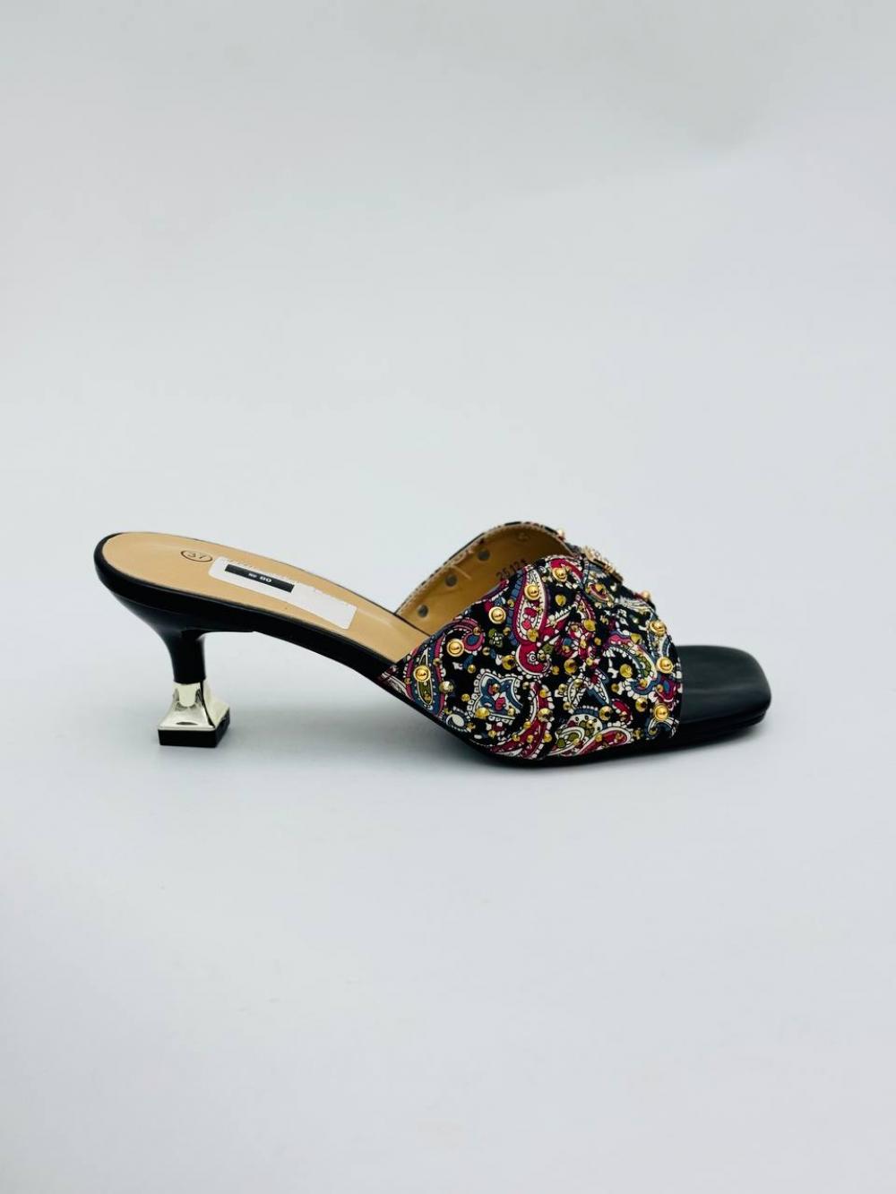 E70 اسود 38 بابوج ستاتي كعب عالي بوز مربع 25121