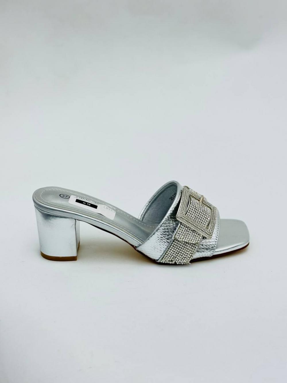 E71 سلفر 37 بابوج ستاتي كعب عالي بوز مربع 25112