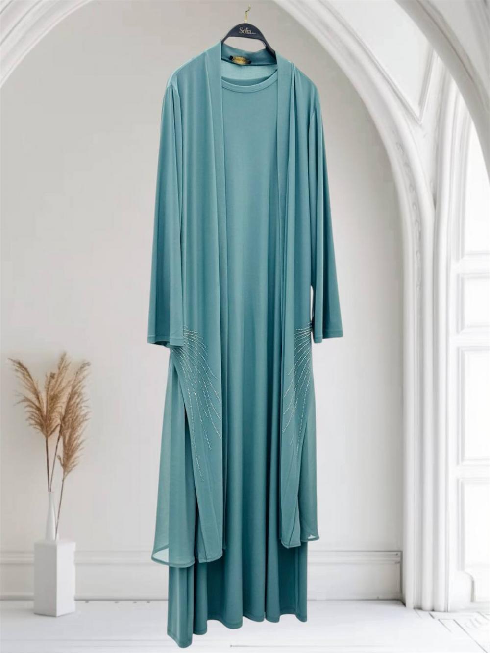 عباية 3014 فيروزي XL بتية ستاتي احجام كبيرة قطعتين